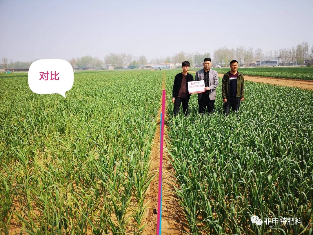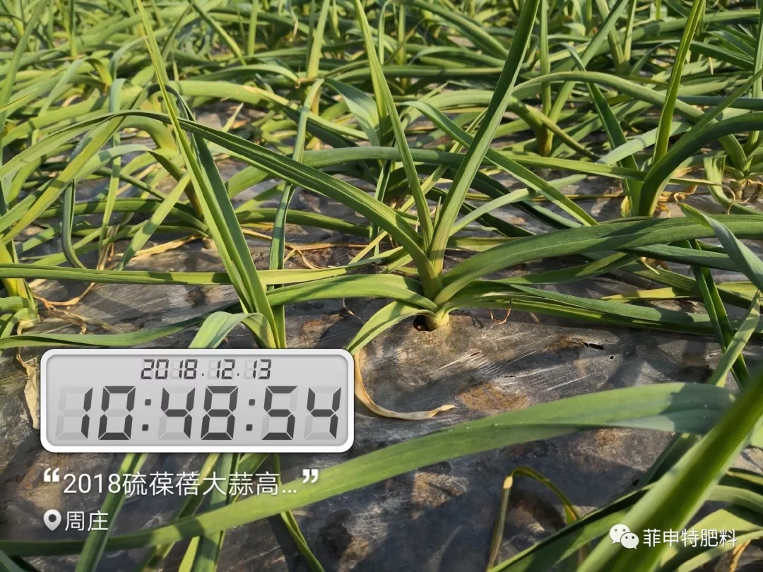 2018年(niánγ♣)12月(yuè)13日(rì),大(dà)蒜即将進入越冬期♦σ∞↓,菲申特工(gōng)作(zuò)人(rén)員(yuán)在蒜區(qū)大λ<±(dà)面積回訪硫葆蓓田間(jiān)使用(yòng)情況,詳細記錄相(xiàng)關資料數(s±✘ε∞hù)據,近(jìn)處細心觀察施用(yòng)菲申特♥'硫葆蓓高(gāo)端控釋肥的(de)蒜苗粗壯、顔色油綠(lǜ)、葉片寬厚。