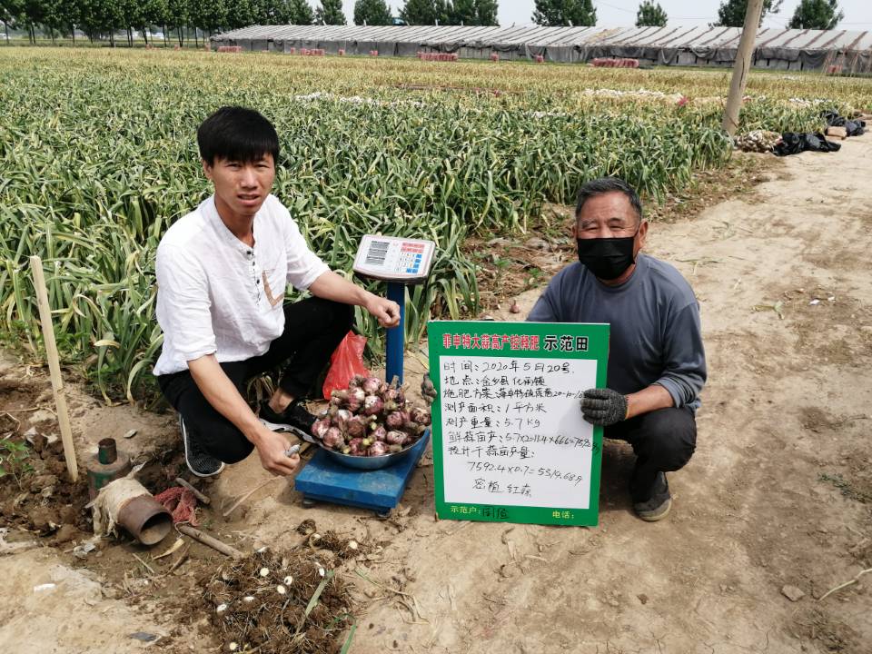 3、後期跟蹤:蒜頭大(dà),葉片綠(lǜ),肥料持續釋放δ₹✔(fàng)不(bù)脫肥。同地(dì)塊對(duì)比明(≈≈míng)顯。